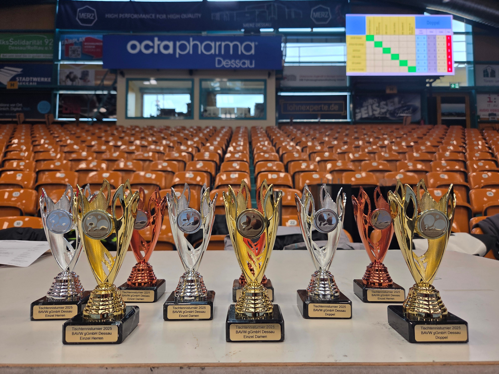Am 13. November 2025 fand unser jährliches Tischtennisturnier erstmals in der Anhalt-Arena Dessau, der offiziellen Spielstätte des DHV 96, statt. Wir sind sehr stolz darauf, in dieser beeindruckenden Umgebung spielen zu dürfen, die besondere Atmosphäre genießen zu können und bedanken uns herzlich bei allen, die dies ermöglicht haben.